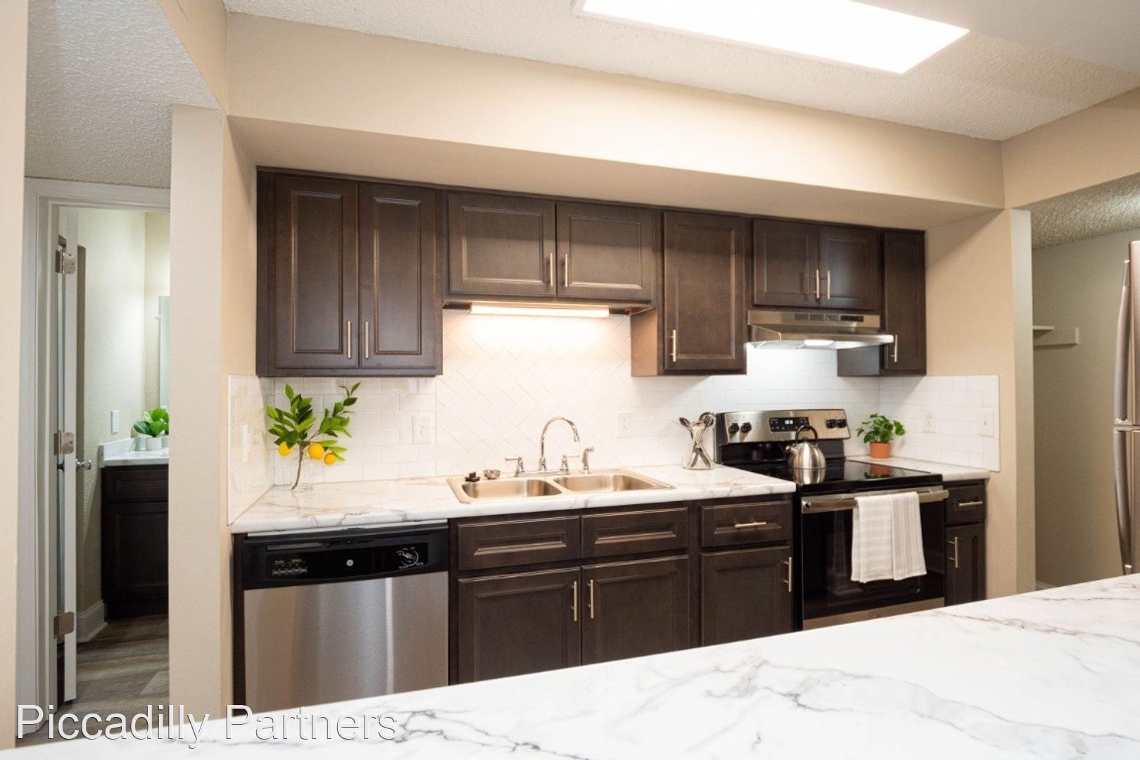 The Stratford Remodeled - The Stratford is a Townhome with 2 Spacious Bedrooms. Each bedroom has 2 closets with one of the closets in the Primary Bedroom being a large walk-in. There are washer/dryer connections off the kitchen and plenty of pantry space. This unit is fully remodeled and features updated cabinets and countertops throughout, upgraded appliances, and a modern subway tile backsplash.